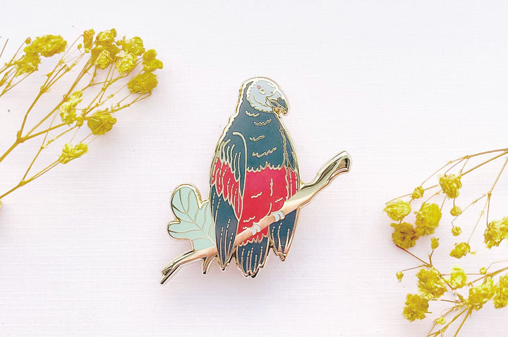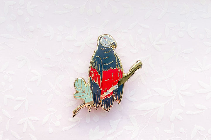 This beautiful Dracula Parrot Enamel Pin features the bird native to New Guinea and is also known as the vulturine parrot which prefers to feed on figs. This hard enamel pin is 2" from tip to tip and was my Patreon Award for June 2023. This hard enamel pin is set on a highly-polished gold-plated metal and has two posts on the back.Please check out my Shipping and Handling page for information regarding shipping transit times, customs and international shipping options and more.