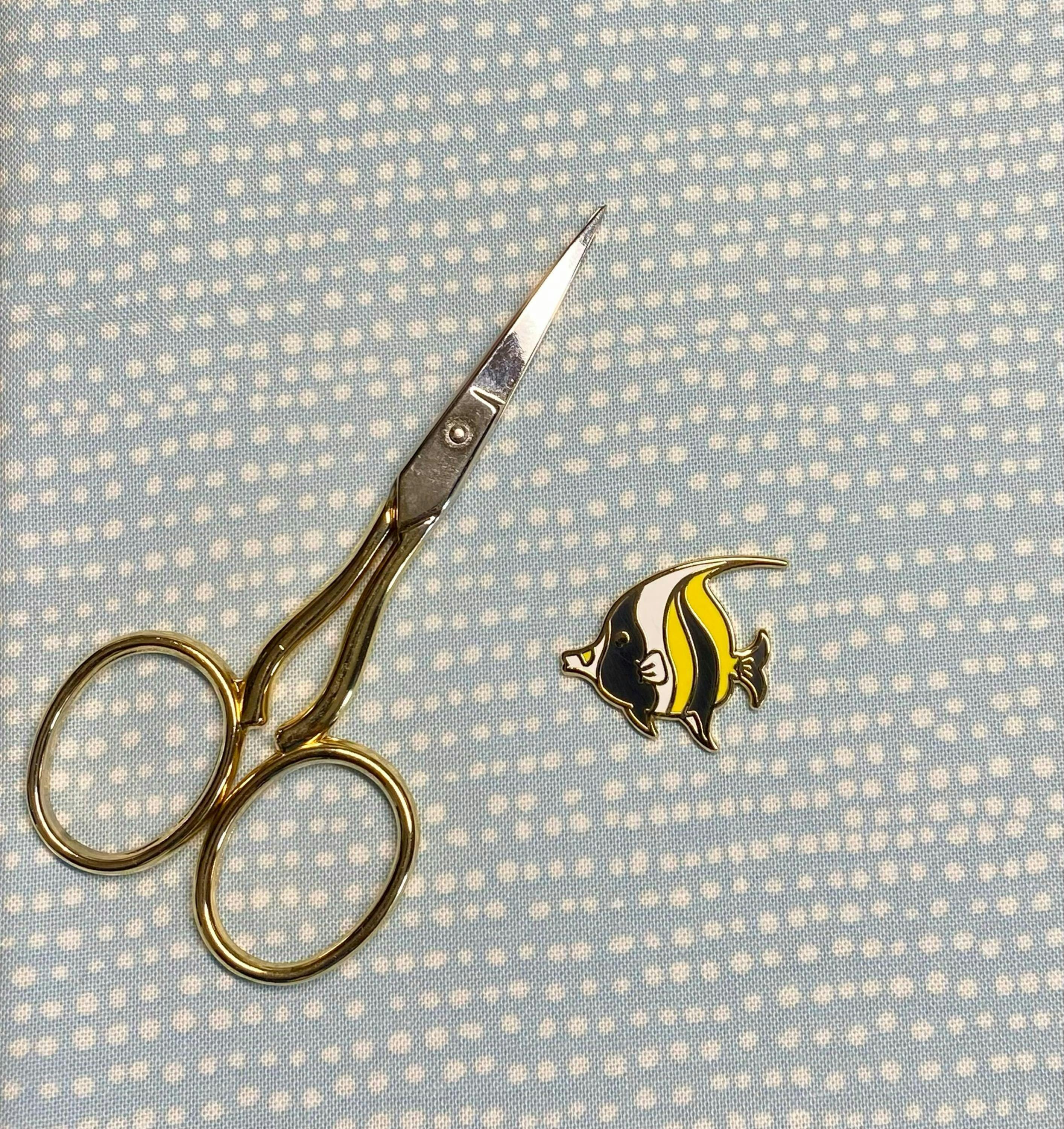 - The tiny moorish idol fish pin illustration is based on my original artwork.