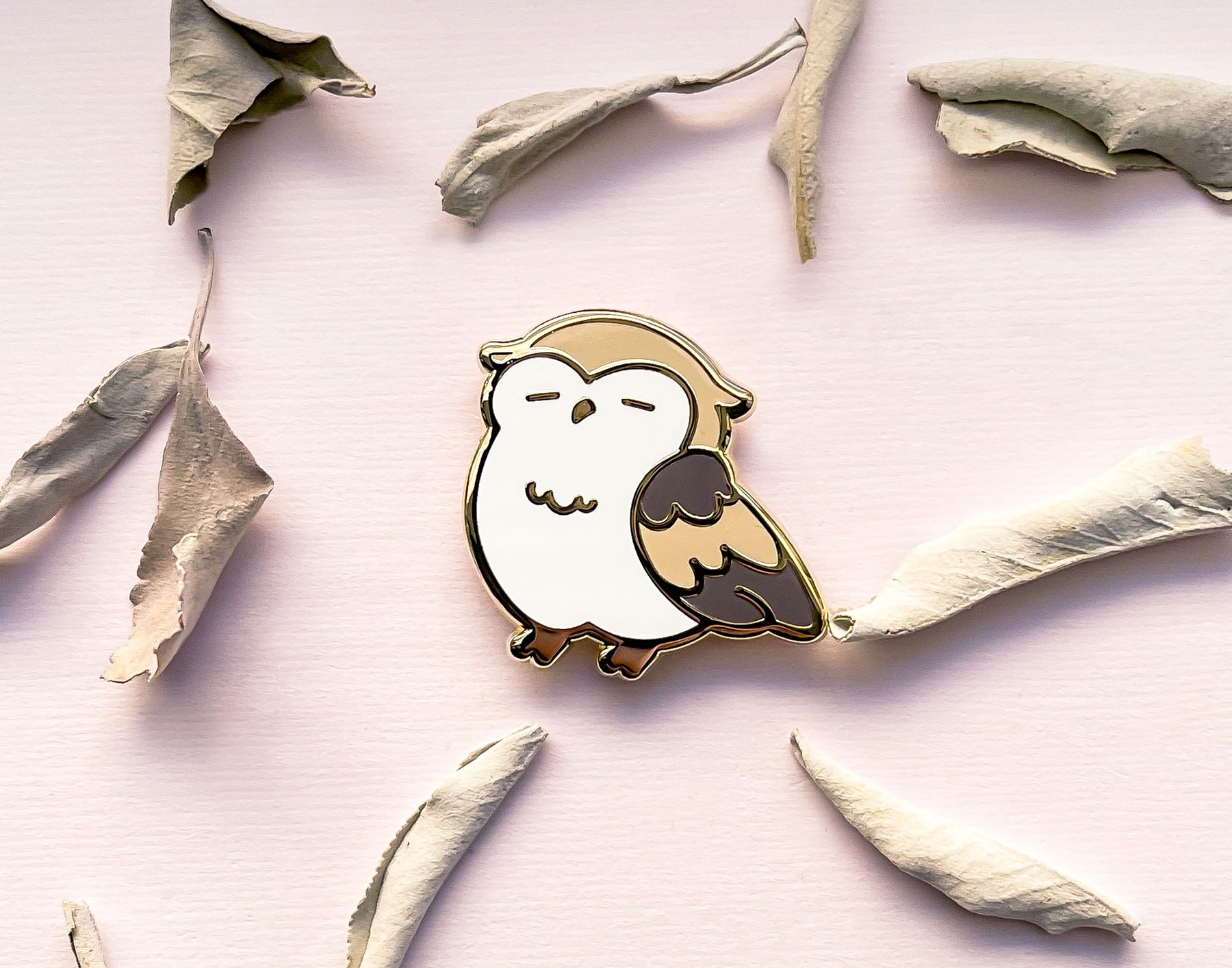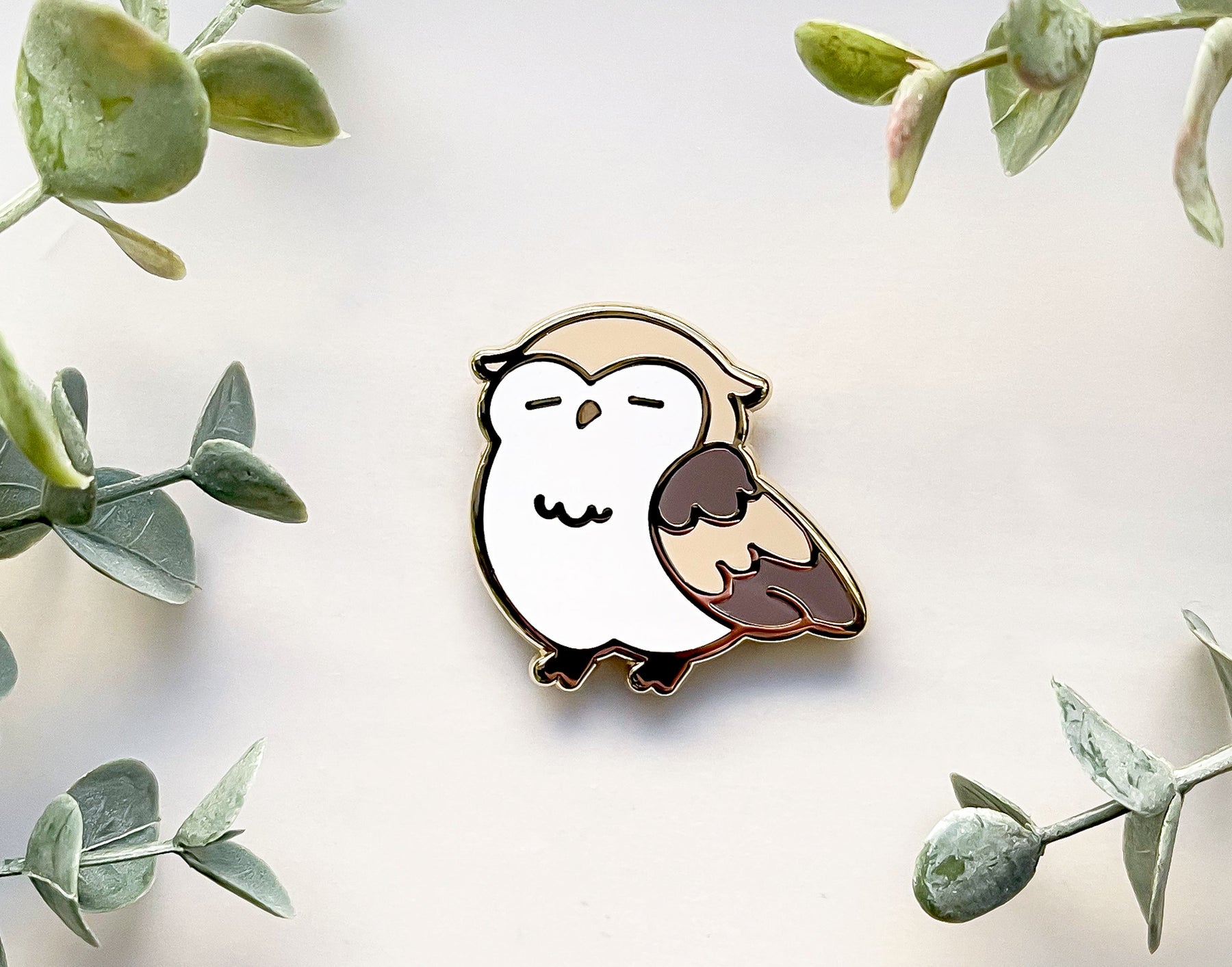 This adorable Baby Barred Owl enamel needle minder features my illustration of a cute barred owl. This design is an upsized and needle minder version of my board filler pin from my mini owls pin set. This needle minder is an excellent way to keep your needles safe and sound and in one place by hanging out on your current project. This hard enamel needle minder is 1.25", gold plated, and features a palette of green and pink. Needle Minders can be shipped with or without a magnet included. To use, place the design side of the needle minder face up on your project, then place the magnet on the back of your project. Your needles will stick to the pretty side of your needle minder and stay safe.